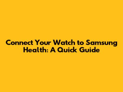 Connect Your Watch To Samsung Health: A Quick Guide
