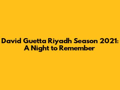 Hey music lovers! Remember the epic Riyadh Season 2021? One of the highlights was definitely when the legendary David Guetta took the stage. If you were there, you know exactly what I’m talking about. If not, let me tell you, it was an unforgettable night filled with incredible music and electrifying energy. David Guetta, the global icon of electronic music, brought his signature sound to Riyadh, creating an atmosphere that had everyone on their feet. The whole city was buzzing with anticipation in the days leading up to the event. Social media was flooded with posts, stories, and countdowns. You could feel the excitement in the air, knowing that one of the world's biggest DJs was about to perform. And let me tell you, he did not disappoint! The stage setup was mind-blowing, with dazzling lights and visuals that perfectly complemented Guetta's music. Every beat, every drop, every transition was flawlessly executed, creating a seamless and immersive experience for the audience. From his classic hits to his latest tracks, Guetta's setlist was a journey through the evolution of electronic music. He had the crowd singing, dancing, and jumping along to every song. It was a true celebration of music and unity. The energy was infectious, and you couldn't help but get caught up in the moment. Seeing thousands of people from different backgrounds coming together to enjoy the same music was truly special. It was a testament to the power of music to transcend borders and connect people. And let's not forget the after-parties! The night didn't end when Guetta left the stage. Several clubs and venues around Riyadh kept the party going, playing his music and celebrating the incredible night we had all just experienced. It was a perfect way to cap off an unforgettable evening. So, if you missed David Guetta at Riyadh Season 2021, make sure you catch him next time he's in town. It's an experience you won't want to miss!