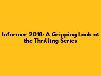 Informer 2018: A Gripping Look At The Thrilling Series