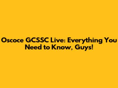 Oscoce GCSSC Live: What You Need To Know