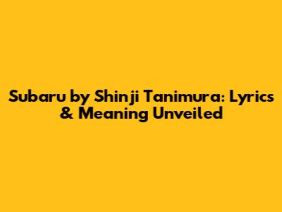 Subaru By Shinji Tanimura: Lyrics & Meaning Unveiled