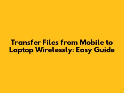 Transfer Files Mobile To Laptop Wirelessly: Easy Guide