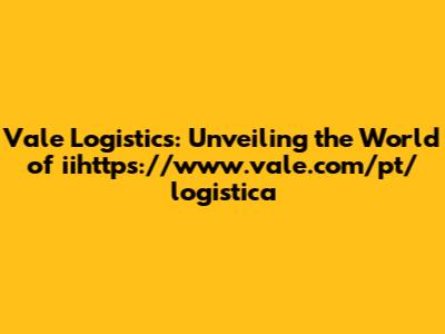 Vale Logistics: Your Guide To Iihttps://www.vale.com/pt/logistica